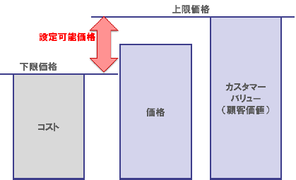 一方、顧客価値(カスタマーバリュー)は価格設定に置ける上限値です。